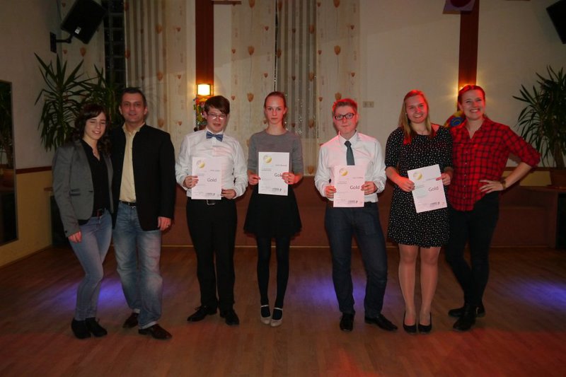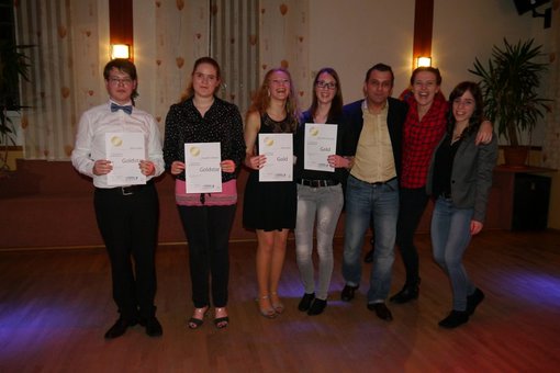 Herzlichen zur bestandenen Prüfung wünschen Franzi, Angelina, Leonie und Klaus